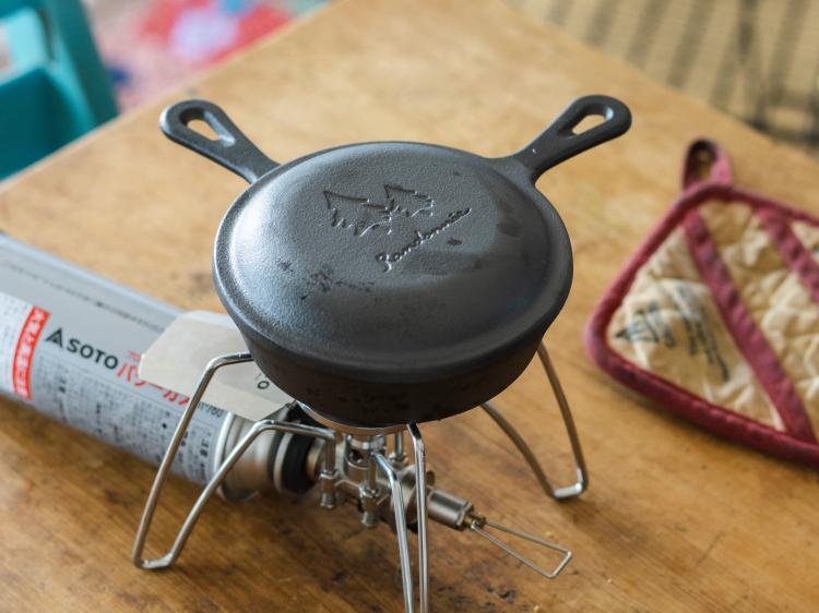 蓋をしたあと、火の通り具合を見たり、調味料を加えたりして作るレシピのときは、調理中にミニパンと蓋の持ち手が重ならないように使うと作業しやすい。