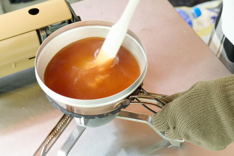 ・味の決め手となるみたらし餡はすべての材料を入れてとろみがつくまで加熱。本だしが重要!